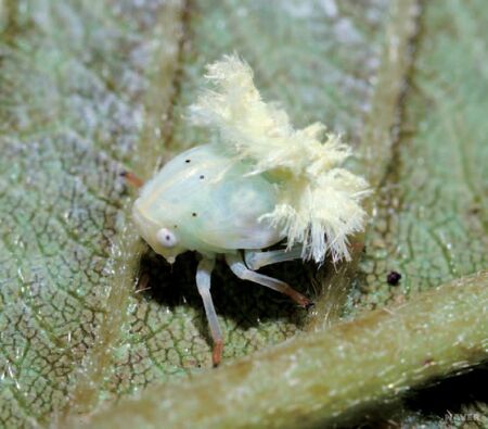 갈색날개매미충은 각 발육 단계마다 독특한 형태를 가집니다. 특히 약충의 흰색 왁스질 분비물이 눈에 띕니다.