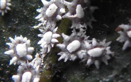 정착한 약충이 밀랍을 분비하여 별 모양의 깍지를 형성하고 고착 생활