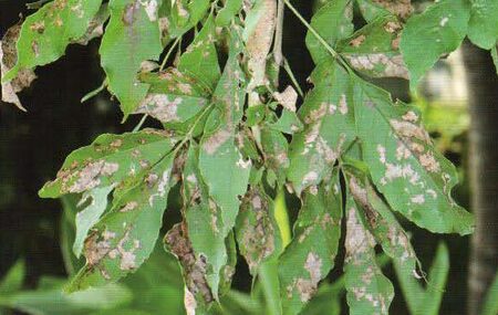 곱추무당벌레는 잎 뒷면에서 잎살을 갉아먹는 특징적인 피해를 유발하며, 이는 식물의 미관을 크게 해칩니다.