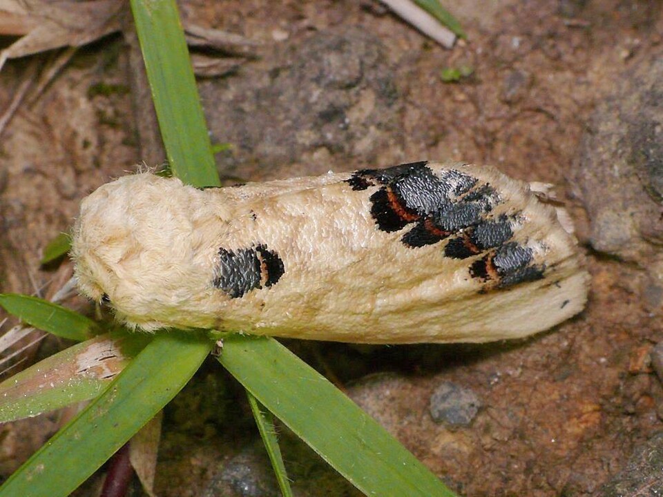 먹무늬재주나방은 성충, 유충, 번데기의 형태가 뚜렷하며, 유충의 독특한 색상과 털이 특징입니다.