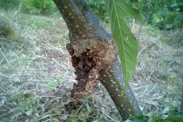 박쥐나방은 유충이 나무 내부를 갉아먹는 천공성 피해가 핵심이며, 외부에 독특한 흔적을 남깁니다.