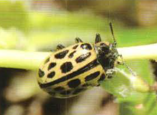 토양에서 월동 성충이 나와 잎을 갉아먹고 잎 뒷면에 무더기로 산란