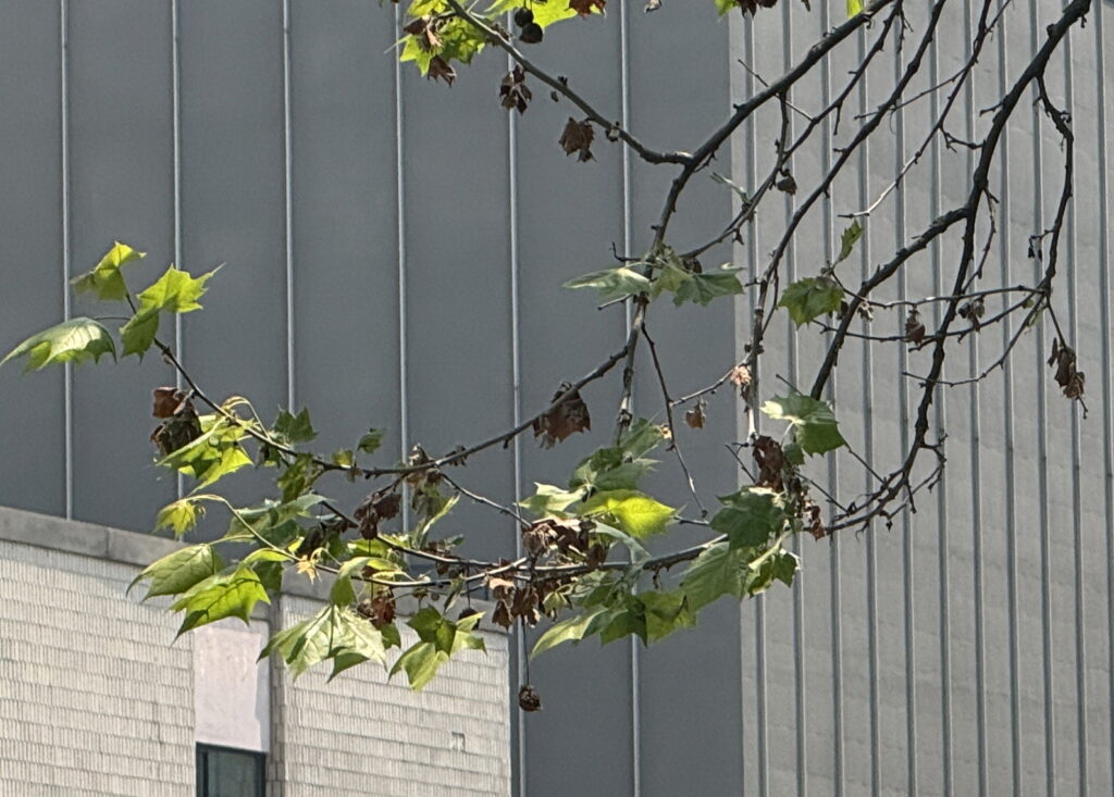 버즘나무탄저병의 주요 피해 증상