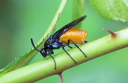 장미등에잎벌은 성충, 유충, 알 등 각 발육 단계마다 특징적인 형태를 가집니다.