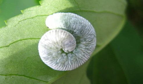 번데기에서 성충이 우화하여 잎 조직 속에 알 산란 (암컷 1마리당 평균 43개 알)