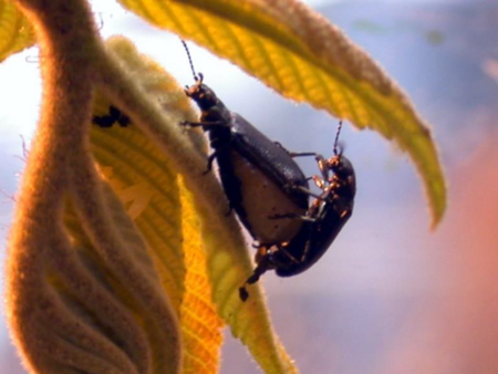 호두나무잎벌레는 딱정벌레목 잎벌레과에 속하는 해충입니다. 호두나무, 가래나무, 왕가래나무 등 호두나무과 식물을 기주로 삼으며, 유충이 잎을 갉아먹는 식엽성 해충입니다. 발생 밀도가 높으면 새순의 잎맥만 남기고 잎 전체를 먹어 치워 나무가 말라 죽은 것처럼 보일 수 있습니다.