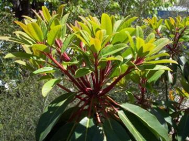 수형: 둥근형의 상록교목 또는 관목 (가지가 굵고 잎이 끝에 모여 달림)