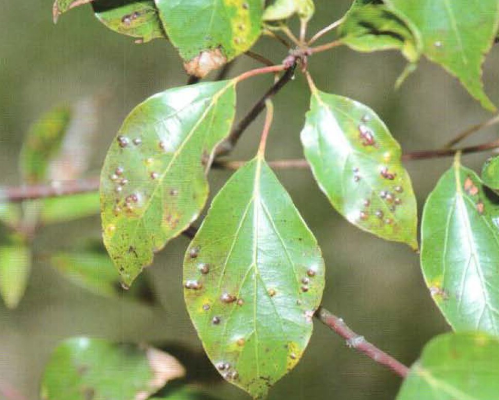 주요 해충: 잎혹벌류는 잎 뒷면에 항아리 모양 벌레혹을 형성합니다. 깍지벌레류, 흰가루병, 탄저병 등도 발생할 수 있습니다.