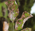 병징 및 표징: 7월 하순부터 잎에 작고 흰 반점 모양의 균총(균사와 분생포자의 무리)이 나타나고, 점차 진전되면서 잎 전체에 밀가루를 뿌려 놓은 듯이 됩니다. 가을이 되면 잎의 균총 위에 작고 둥근 노란 알갱이(자낭구)가 다수 나타나고 성숙하면 검은색으로 변합니다. 병원균은 Uncinula fraxini, Phyllactinia fraxini 입니다.