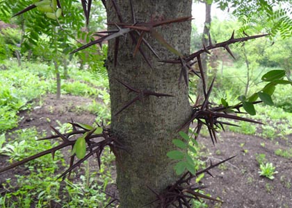 - 줄기나 가지에 크고 굳센 가시가 발달하며, 때로는 갈래가 나 있음.