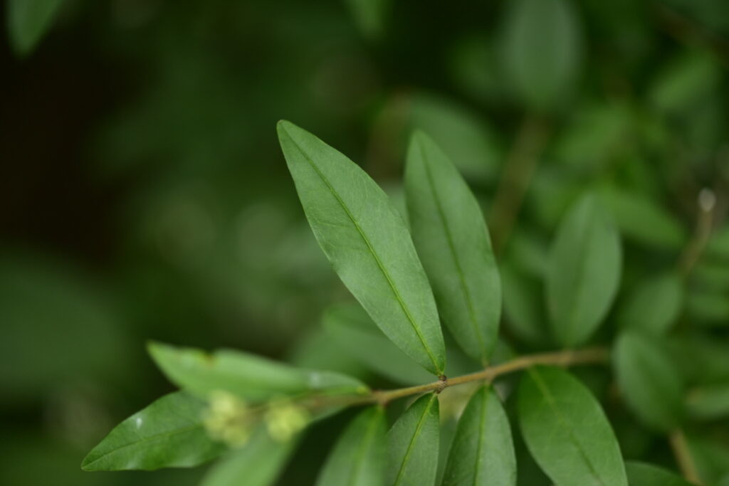 쥐똥나무만의 특징: 가지가 많고 촘촘하여 울타리용으로 적합합니다. 잎은 마주나며 난형이고, 열매가 검은색으로 쥐똥처럼 생겨 이름이 유래했습니다.